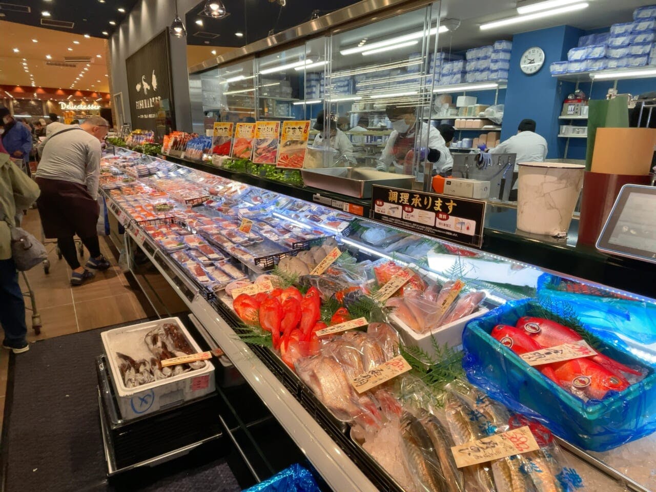 鮮魚部門は対面コーナーを導入、丸魚を豊富に扱う一方、フライパンなどの加熱調理ですぐに食べられる味付け済みの半調理品を集め、「チャチャッとかんたん!ひとてまシールド」コーナーが見られた。