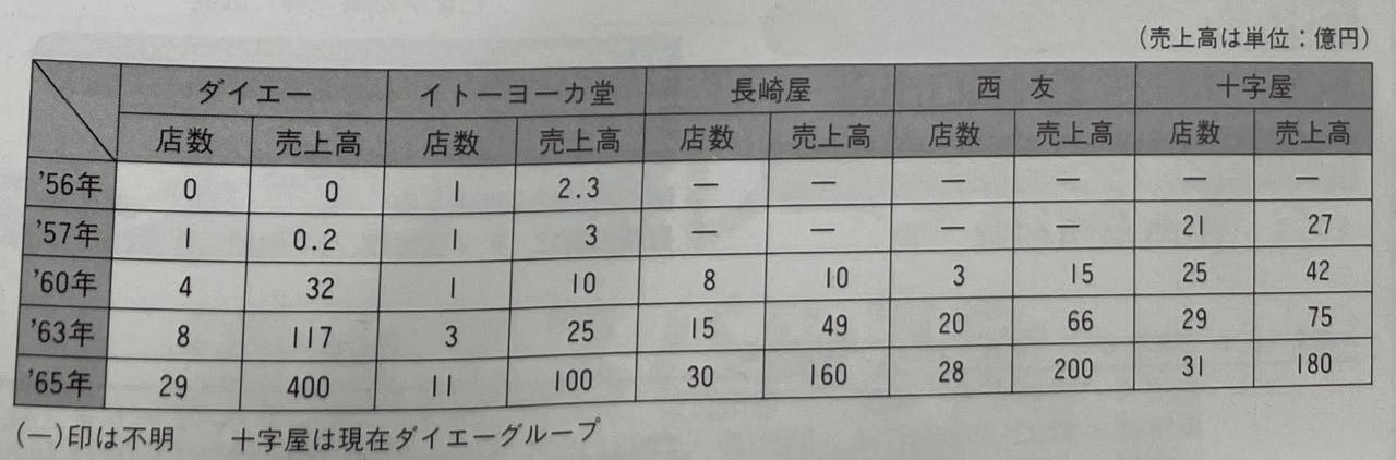 1951年3月、次弟の博と共同で薬品問屋を、大阪は日本橋へ通ずる三越大阪店の近く、平野町に社員7人・広さ5坪を開店するや、〈商いは難し〉と感じ、問屋を「ディスカウント・ドラッグストア」に業態転換。それから6年後、今度は大阪・千林駅前に30坪・従業員13人で、年商3000万円のドラッグストアを開店。1年後には、神戸は三宮の裏通りに「ディスカウントストア」をつくった。「主婦の店」である。そして’60年代初頭、750坪スタイルの店舗を神戸を中心に一挙に5店を開店し、そして九州に進出。そのスピード感に中内功は44歳で時の人となった。