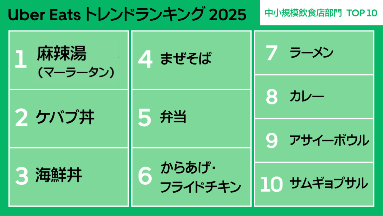 Uber Eatsが2025年のトレンドランキングを発表 「麻辣湯」が独走状態!?