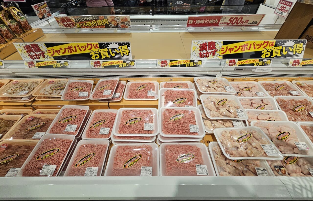 豚や鶏肉はファミリー世帯向けに大容量の「ジャンボパック」を販売する。「豚ロース味付トンテキ」など、簡便調理の商品も充実させた。
