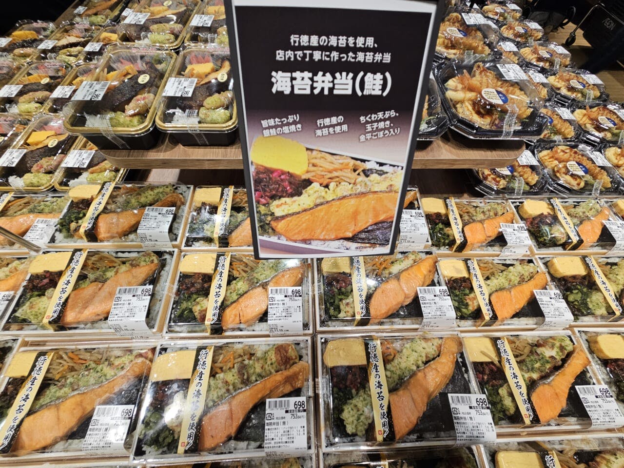 新商品の「海苔弁当(鮭)」は、千葉県市川市の名産品「行徳海苔」を使っている