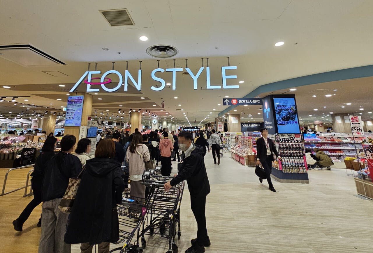 イオンリテール(千葉県/古澤康之社長)は11月15日、千葉県市川市の商業施設「ニッケコルトンプラザ」に、総合スーパー(GMS)「イオンスタイル市川コルトンプラザ」(以下、市川コルトンプラザ店)をオープンした。2025年8月末に閉店した「ダイエーいちかわコルトンプラザ店」から区画を引き継いだ同店舗。開店日は約2000人が詰めかけ、食品売場は入場制限がかけられる盛況ぶりだった。開業日当日の様子をレポートする。